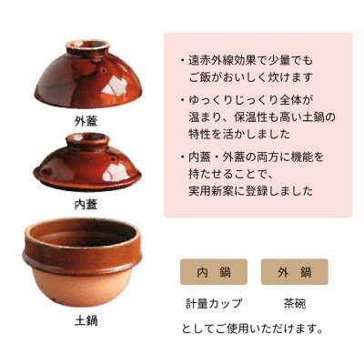益子焼 炊飯土鍋 1合炊き用 商品説明土鍋ご飯をもっと手軽に簡単に。